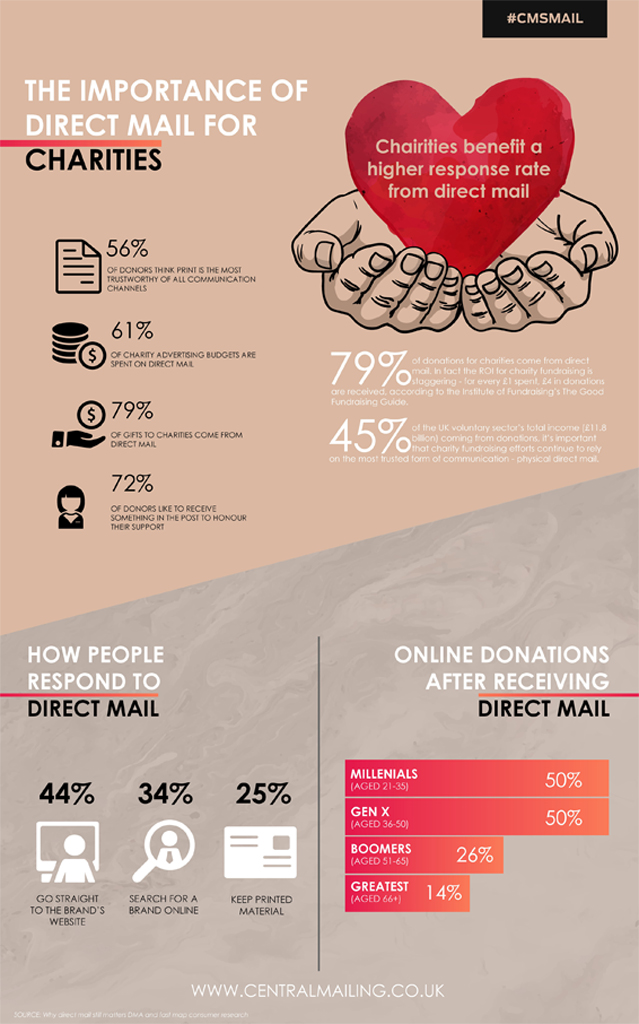 Have a look below, we have direct mail infographic for just about anything, ranging from why charities benefit the most from using direct mail all the way through to why direct mail is still a dominating factor in the marketing industry.